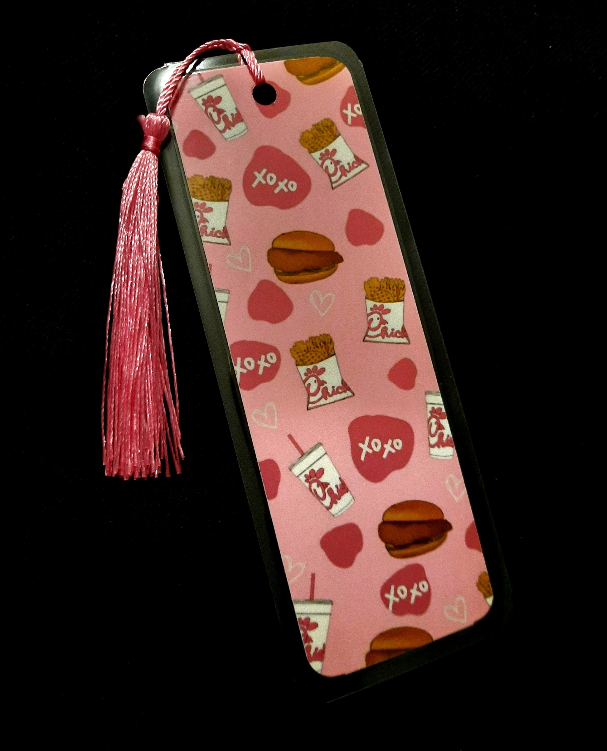 *Please note that you are buying a piece of art and not a product. You are paying for my time and artistry, as well as the supplies it takes to create these bookmarks, not official merchandise. Any use of material protected by law, such as "Chick-fil-a”, etc., is for descriptive purposes only. I have not received any endorsement from and are not affiliated with or licensed by any holder of intellectual property or common law rights related to Chick-fil-a books, films, and merchandise, any of their subsidiaries or licensees.