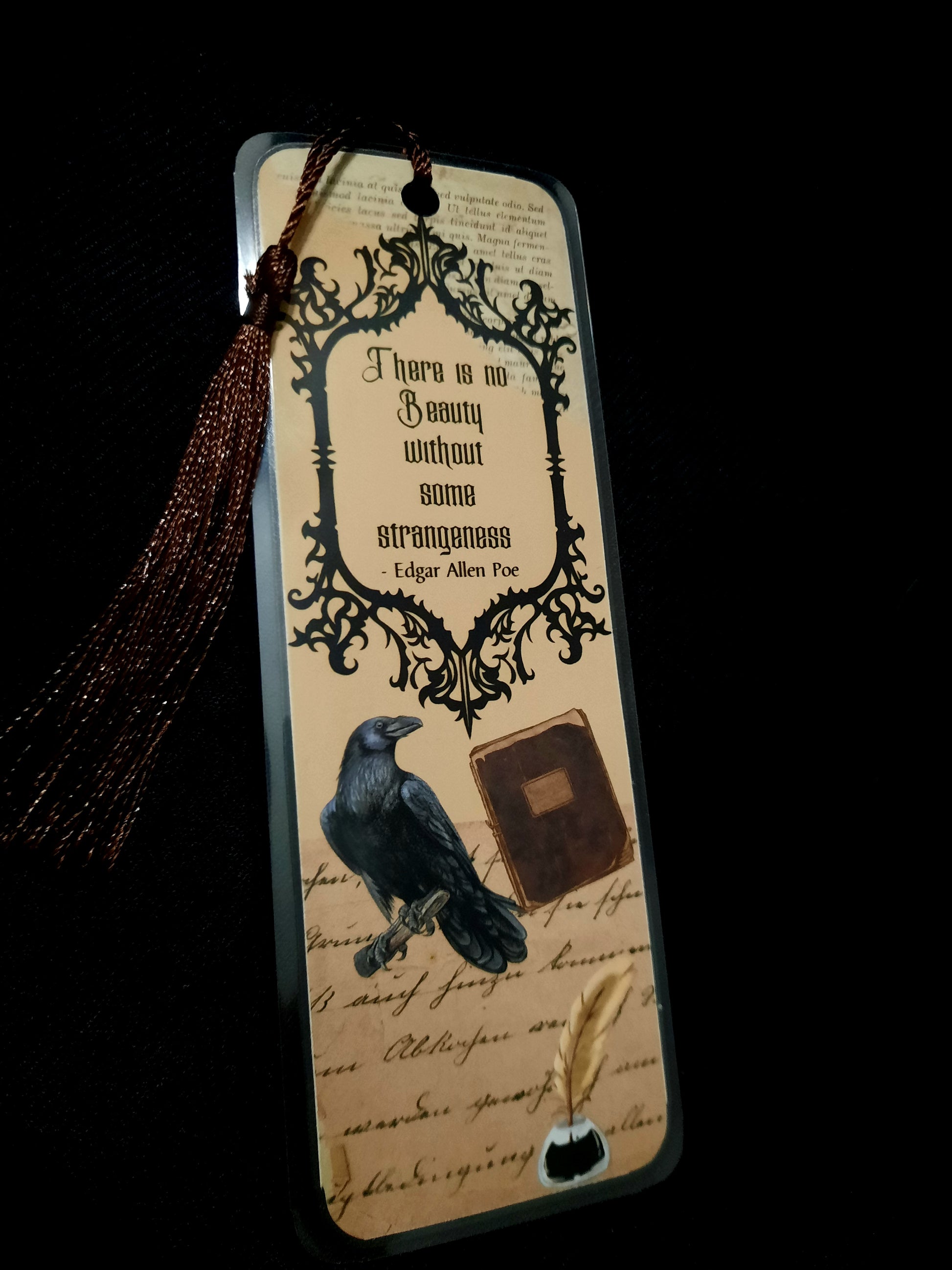 Edgar Allan Poe bookmark is laminated and 2x6"