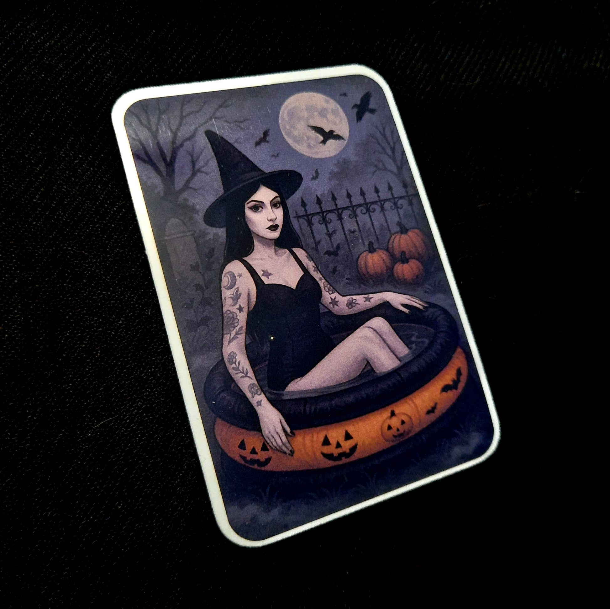Just a goth witch and her haunted inflatable pool. This sticker captures the perfect Summerween mood.