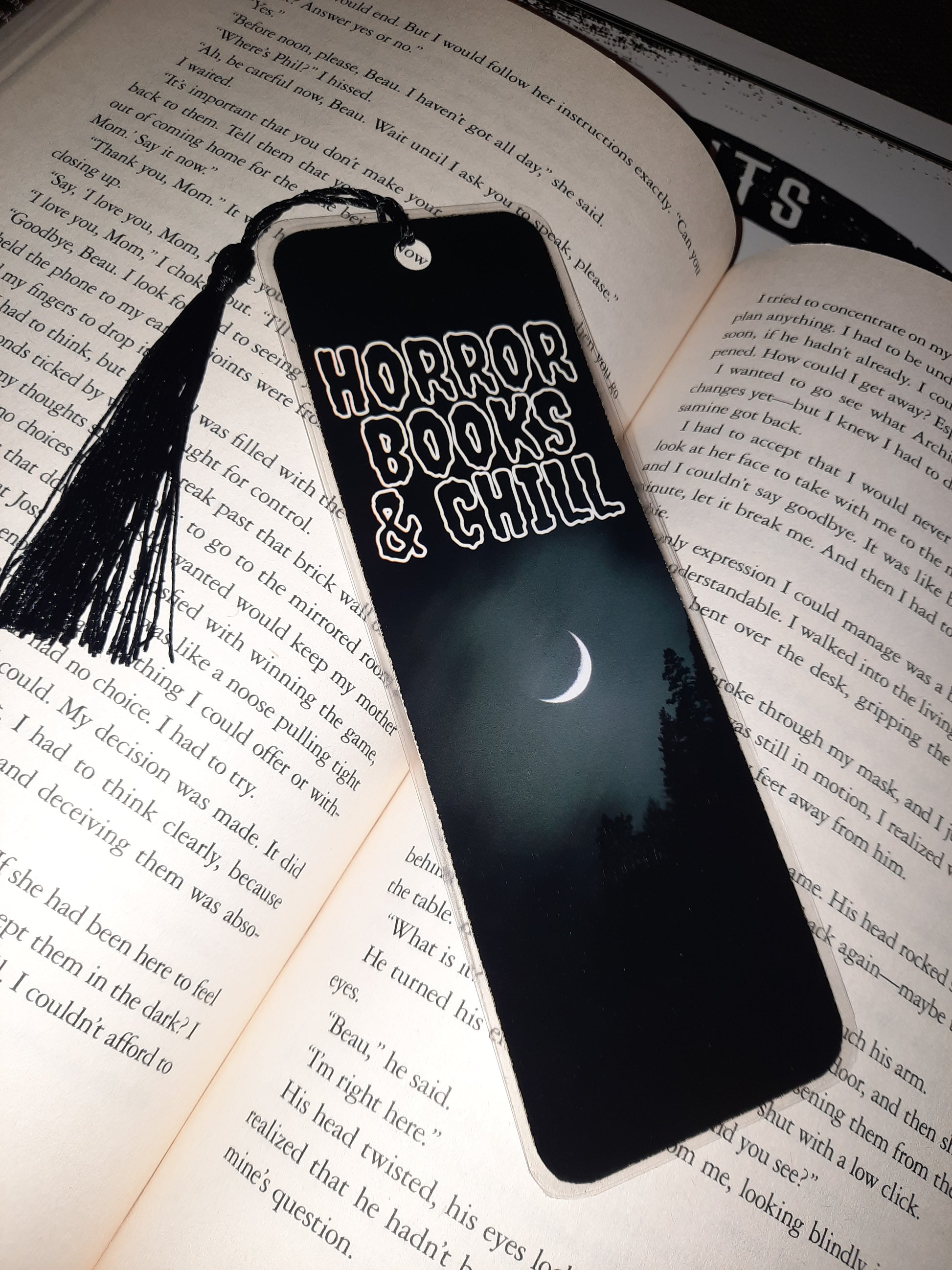 2x6 inch one-sided bookmark. Laminated with a black tassel.