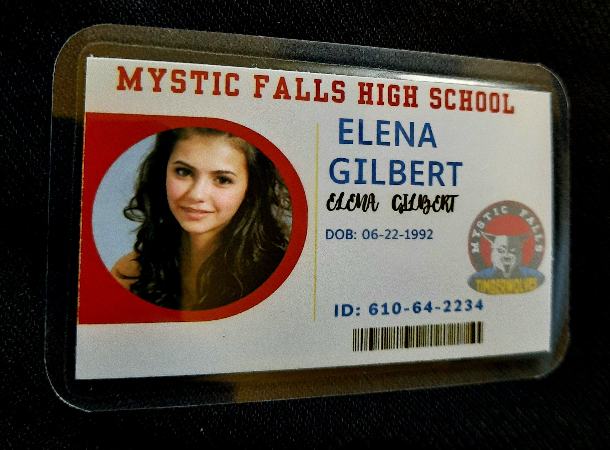 Mystic Falls High School student ID card, inspired by the hit show The Vampire Diaries.