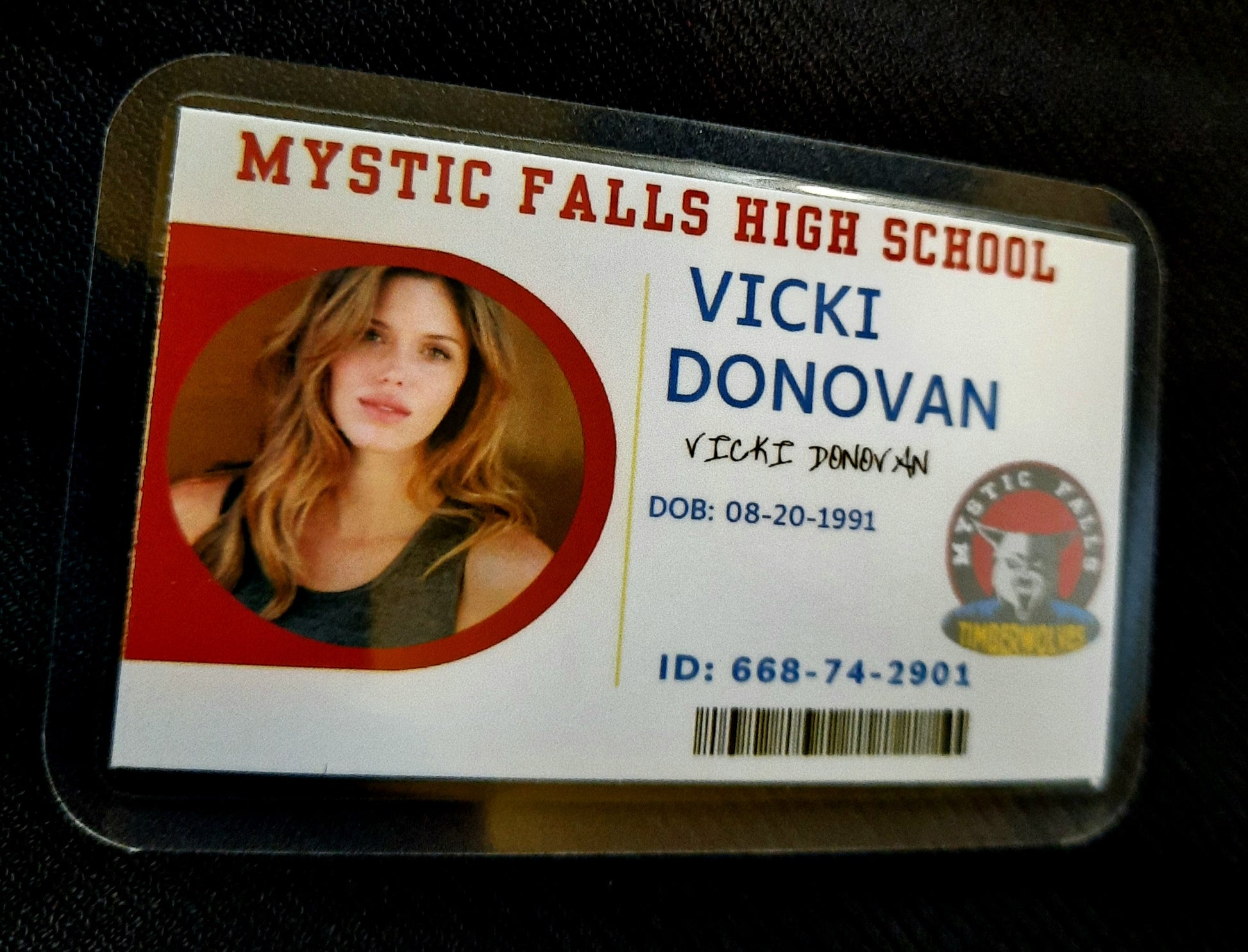 Mystic Falls High School student ID card, inspired by the hit show The Vampire Diaries.