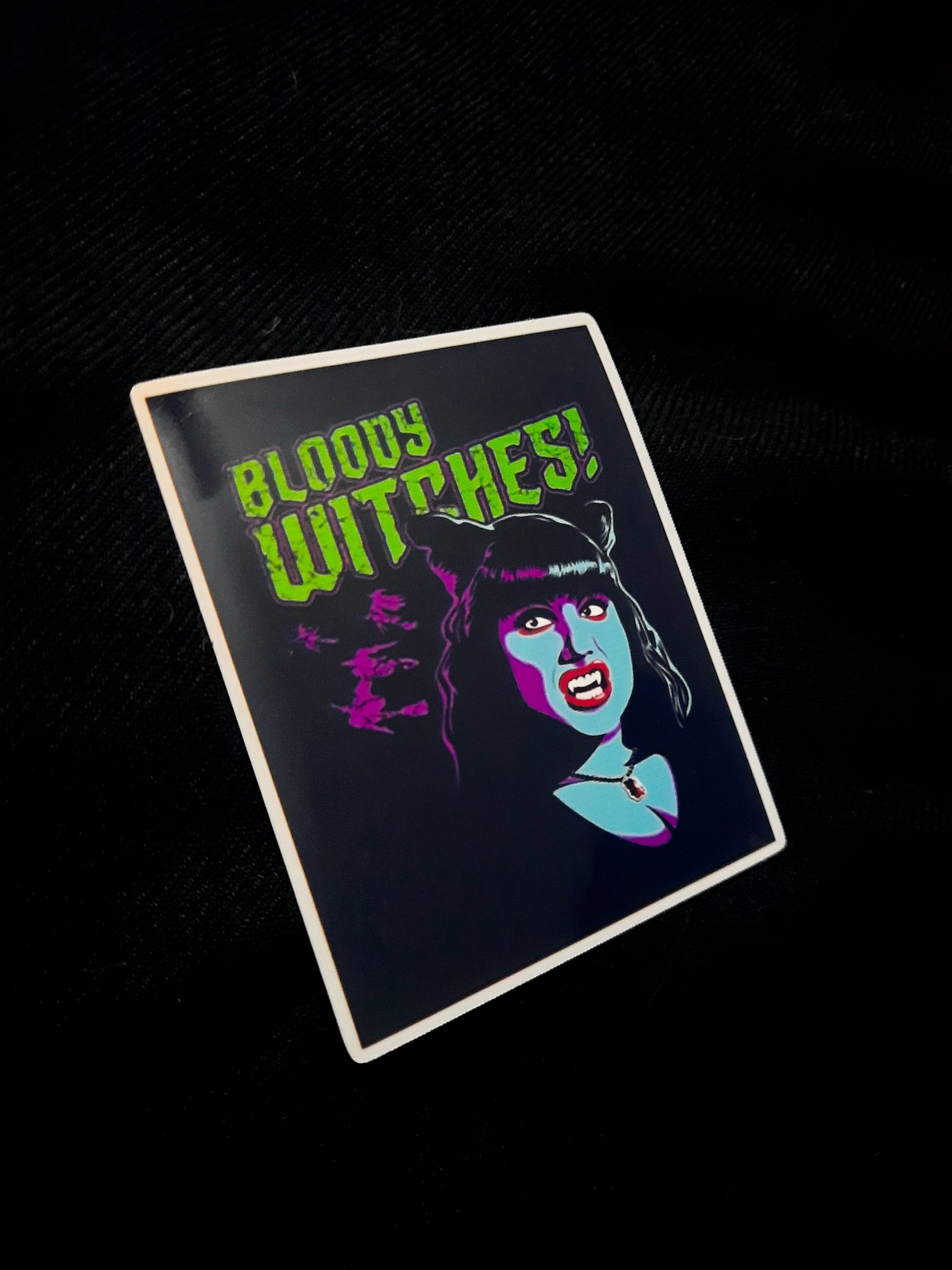 Nadja in all her fiery, chaotic glory-shouting "Bloody Witches!" the way only she can. A must-have for What We Do in the Shadows fans who live for her sharp tongue, sharp teeth, and even sharper style. Perfect for laptops, journals, or your coffin lid.