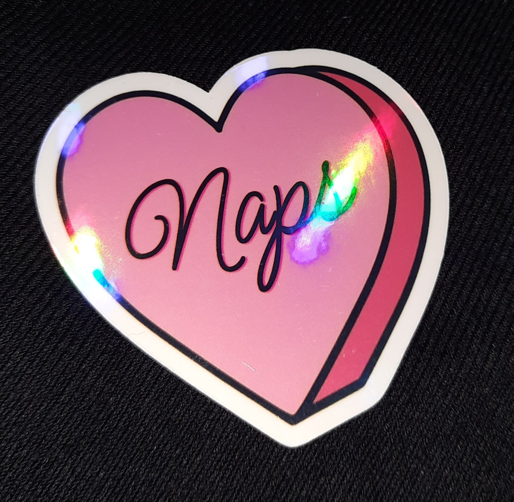 Perfect for all of us nap lovers! Holographic laminate and water resistant.