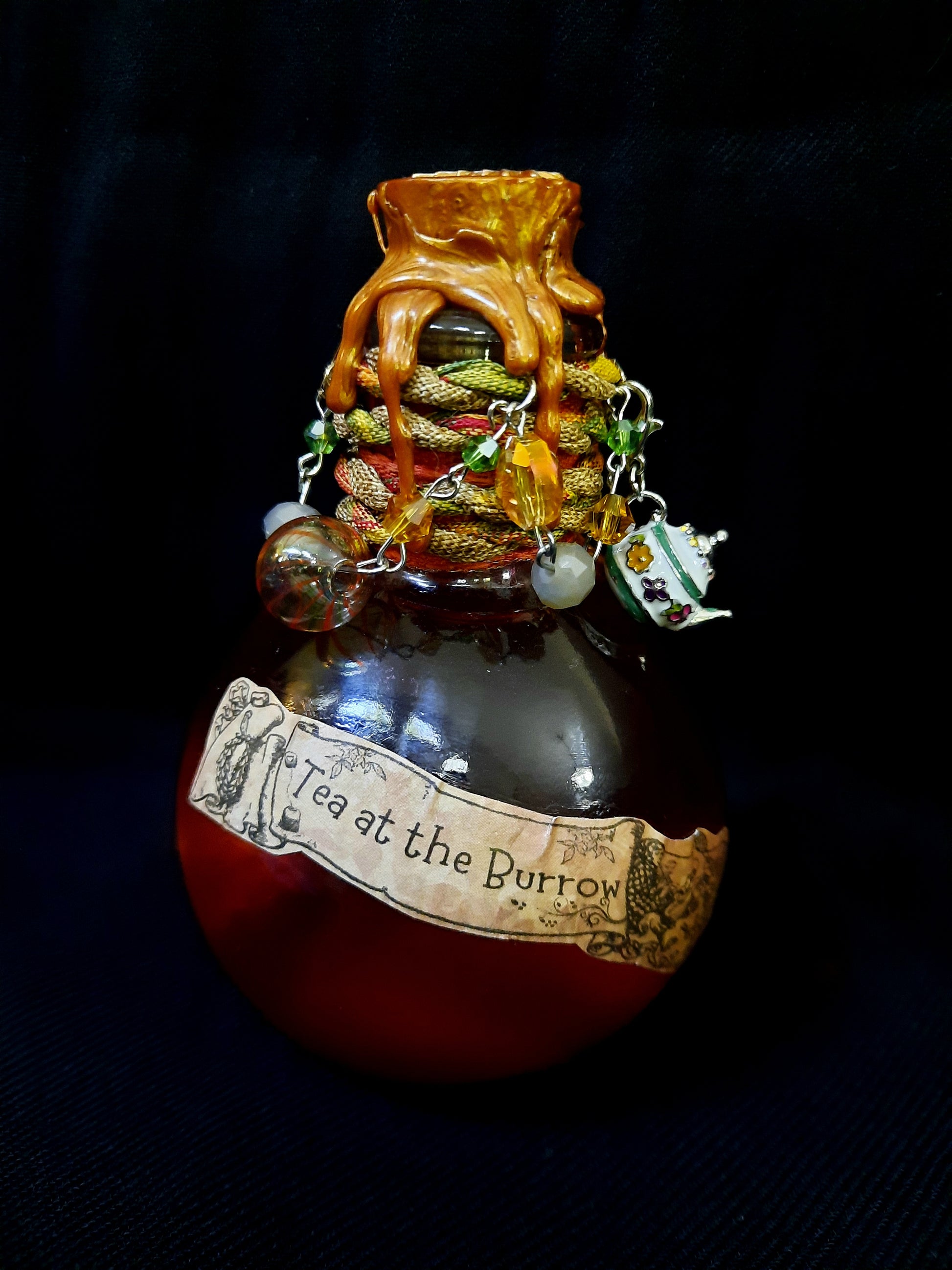 Tea At The Burrow potion bottle is cute a quirky just like Molly Weasley herself.