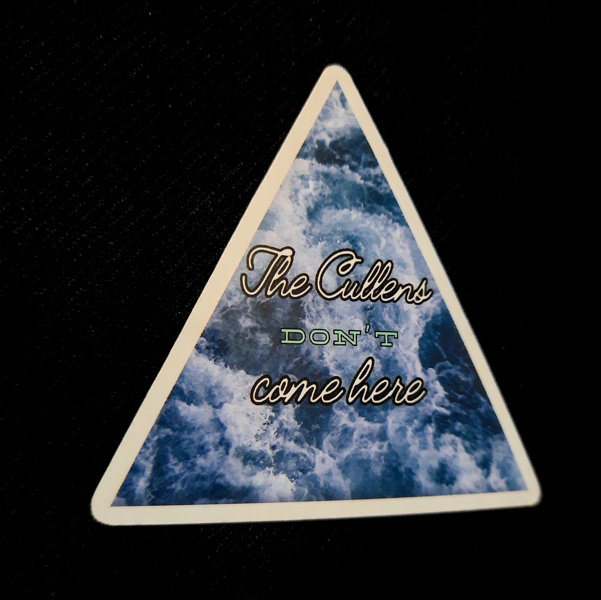 Triangle sticker with ocean waves and the iconic line from Jacob in Twilight.