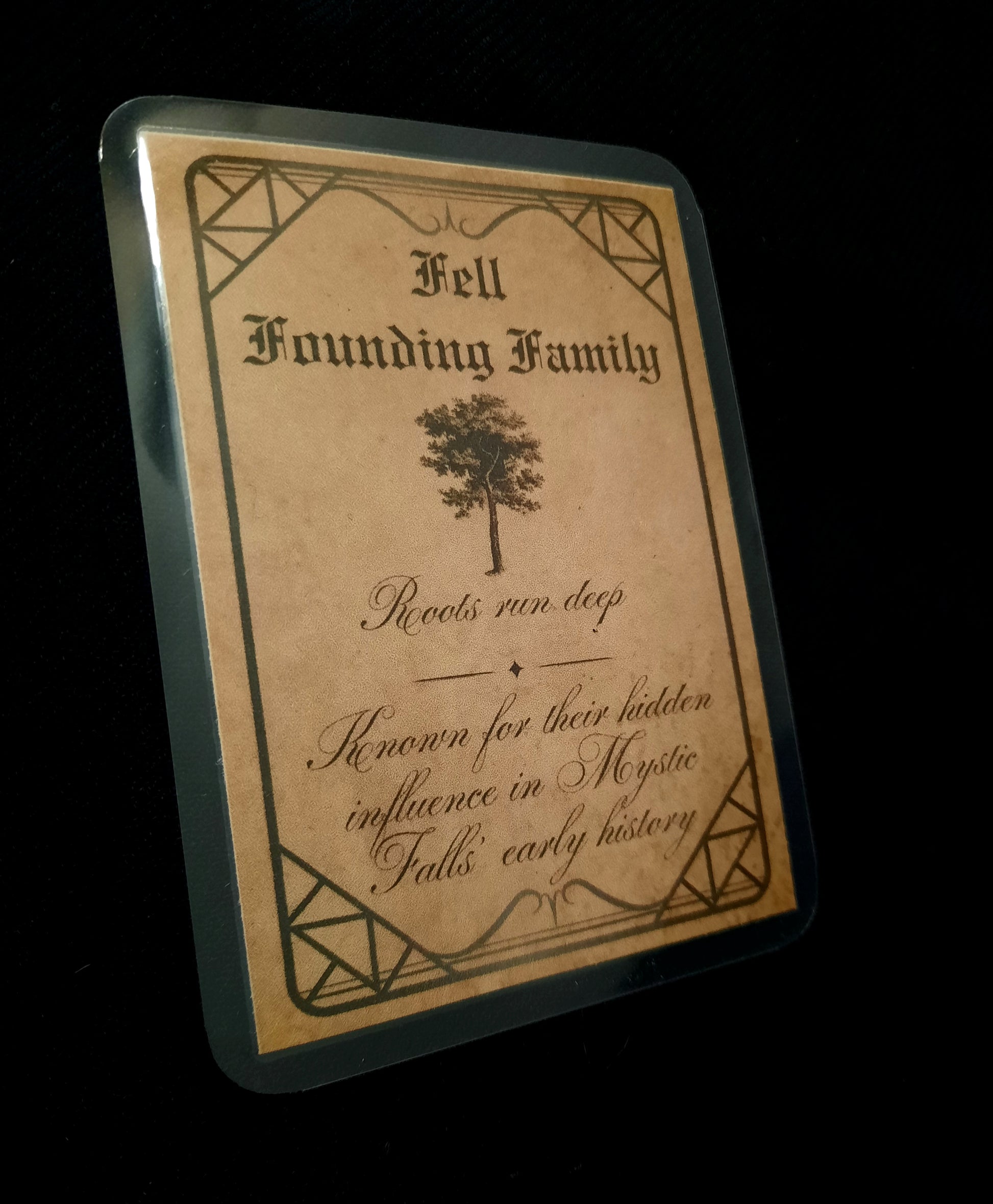 Choose your favorite family card or collect them all! (Full set includes Fell, Gilbert, Salvatore, Lockwood, and Forbes families)
