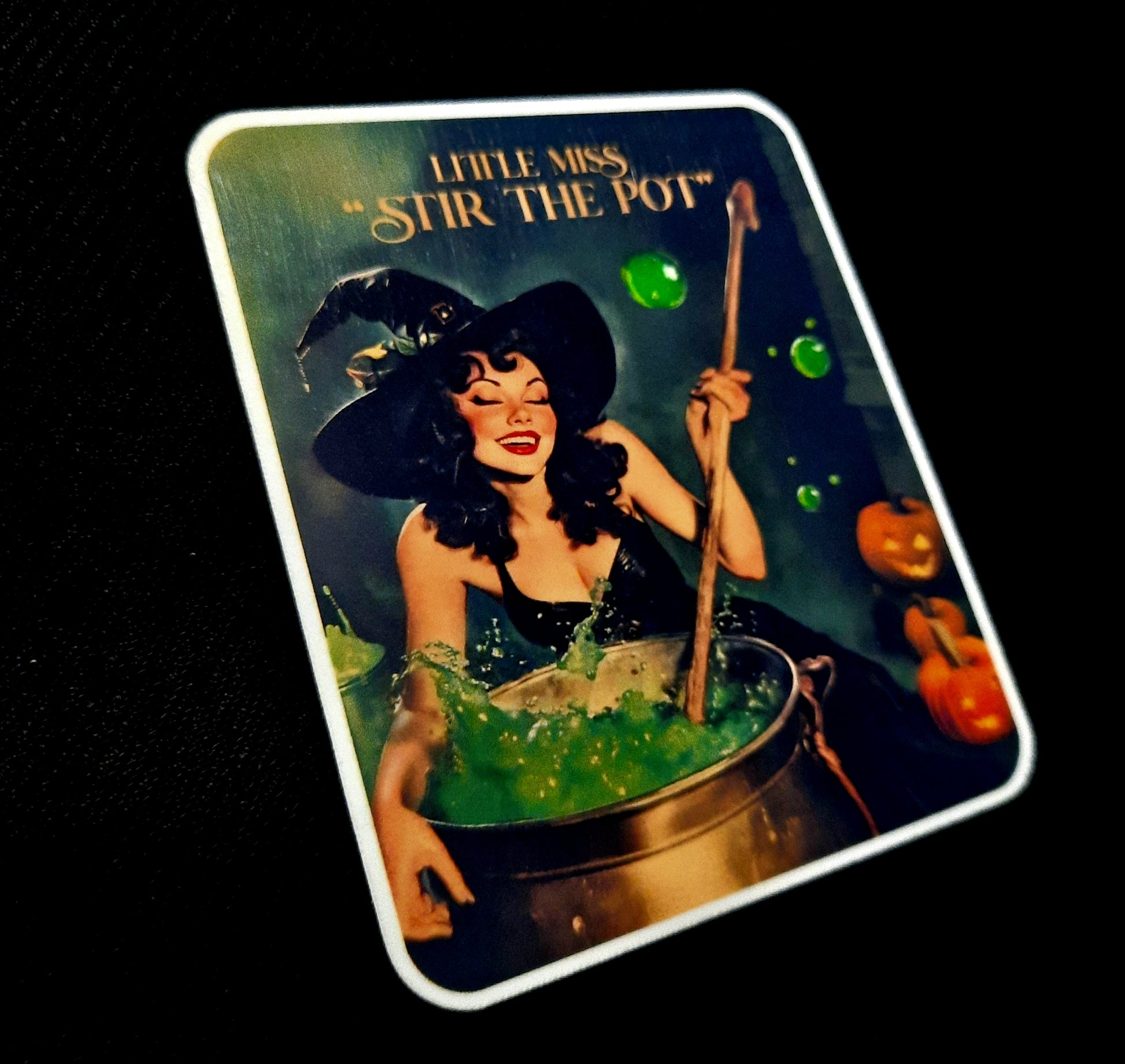 Vintage Halloween Pin Up Witch Sticker- Little miss stir the pot.